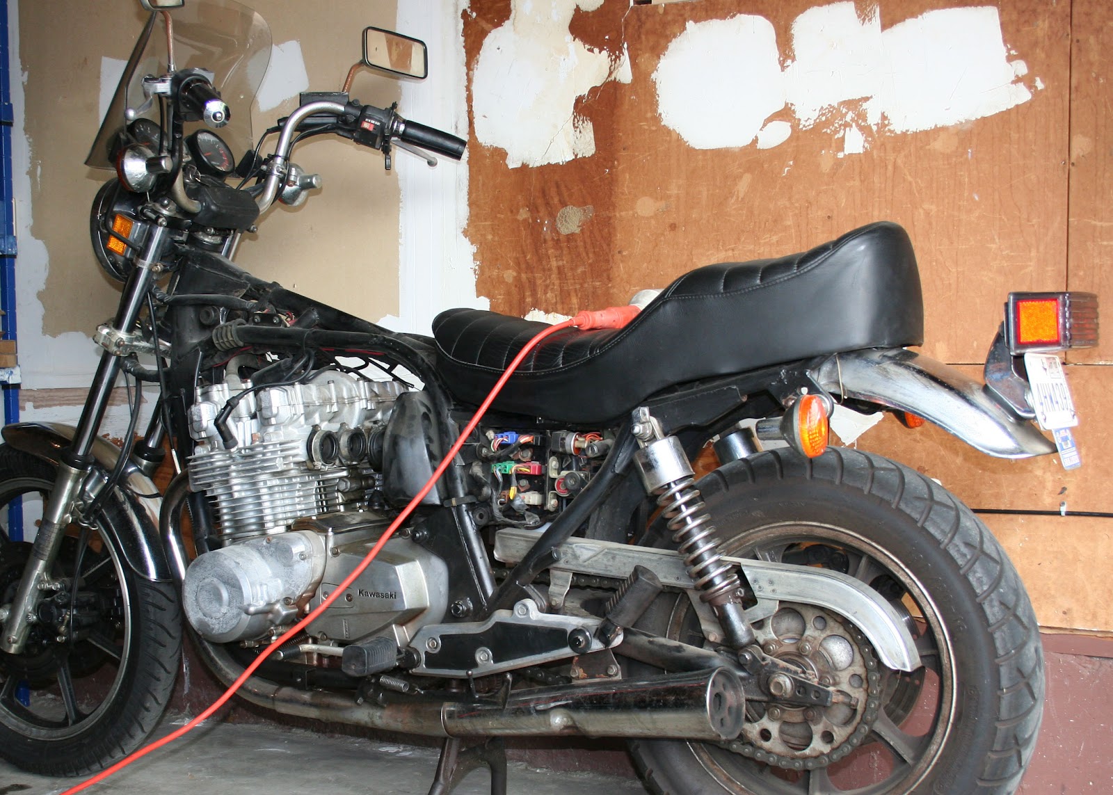 I started working on that Kaw this week. When we picked it up it had been sitting for almost 2 years. It would run but start-up and idle were kinda rough. I rode it home, took it on the freeway up to 70 and it ran pretty good but it did need some tuning. So let the tear-down begin!