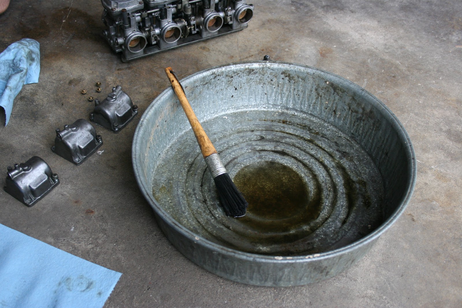 I started cleaning and BEHOLD! YUCK! I removed the float bowls, jets, fuel chambers, needle jet, and everything, and cleaned it all. All that dark stuff came out of just the float bowls. If you look close you can see oily buildup inside the chambers and even some corrosion. Fortunately, the diaphragms were still intact and in very good shape. The needle plates in 2 of the carbs were frozen solid inside and would not move. I had quite a time trying to get them out. The carburetor shaft choke would not move freely so upon reassembly I lightly lubricated it. After 2 cans of carb cleaner, they were shining and beautiful, ready to be installed.